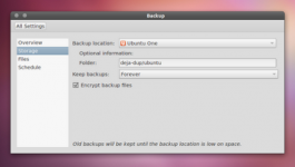 一位Ubuntu 11.10开发者透露,Ubuntu one 将会集成Deja Dup备份工具,并提供了软件截图: 目前这一备份工具软件...